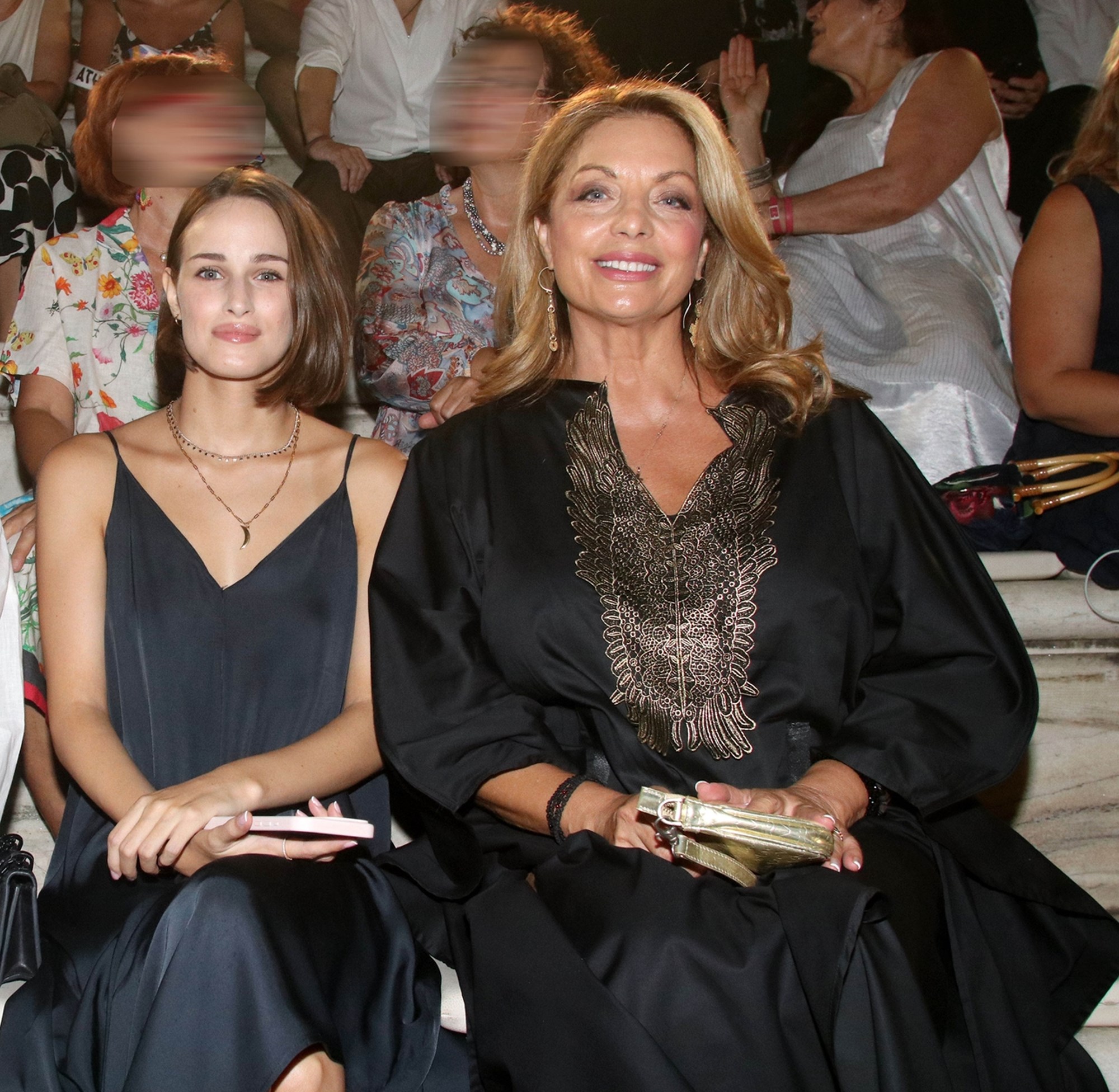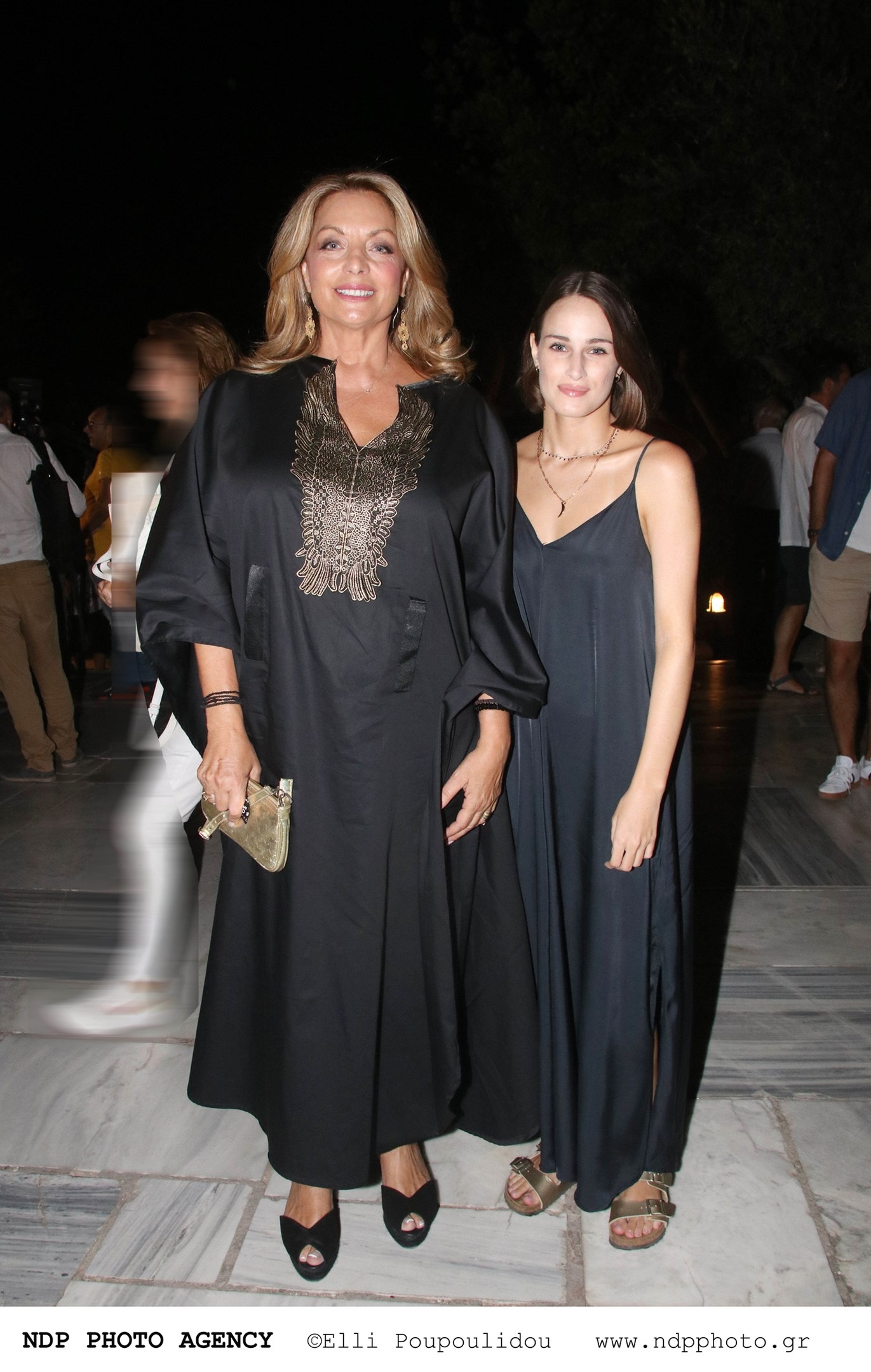 Μαζί της ήταν η κόρη της Μαρία Βοσκοπούλου, η οποία φόρεσε ένα nude μάξι εφαρμοστό φόρεμα.