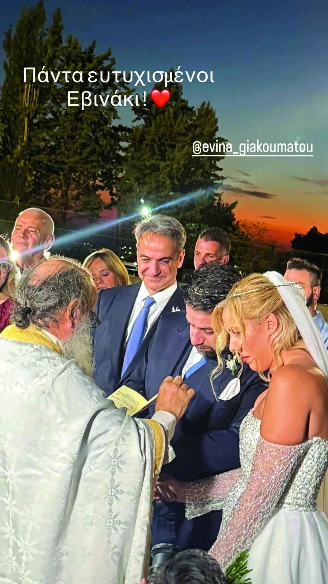 Η τελετή, όπως είπε, ήταν λιτή και οικογενειακή, μακριά από τα φώτα της δημοσιότητας. Τον γάμο τέλεσε ο πρωθυπουργός Κυριάκος Μητσοτάκης, ο οποίος ευχήθηκε στο ζευγάρι να αποκτήσει και δεύτερο παιδί και να κρατήσει την οικογένειά του ενωμένη και παρούσα σε κάθε στιγμή. «Ήθελα απλώς να πάρω την ευλογία για το παιδί μας, δεν είχα καθόλου άγχος», είπε χαρακτηριστικά.