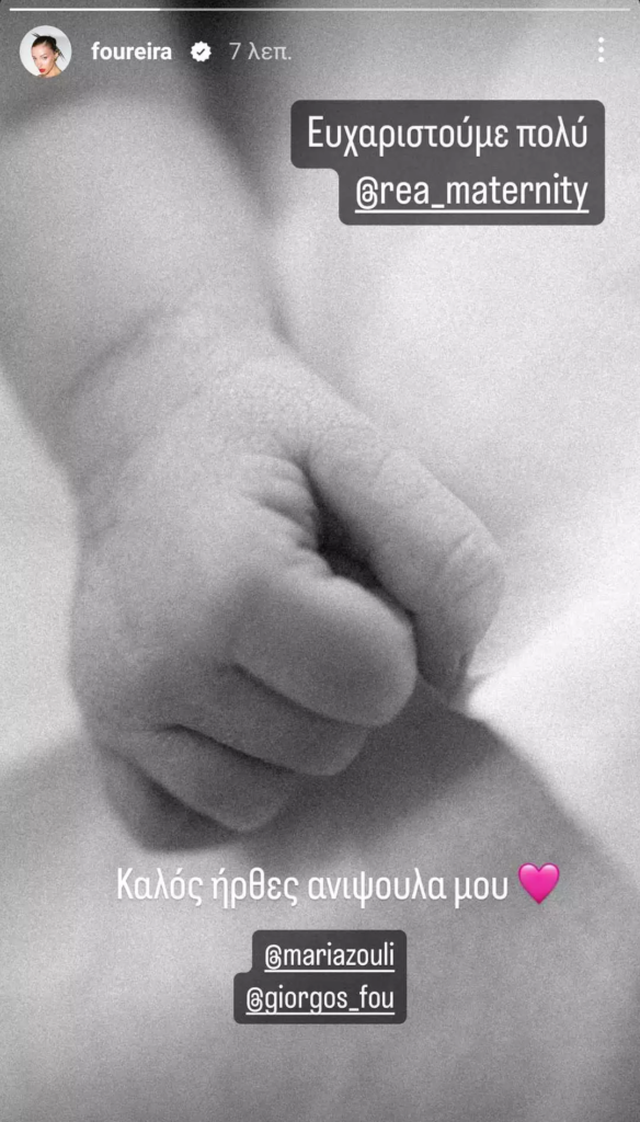 «Καλώς ήρθες ανιψούλα μου» έγραψε η Ελένη Φουρέιρα, αναρτώντας ένα στιγμιότυπο στο οποίο φαίνεται το χεράκι του βρέφους.
