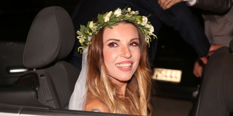 Η Ευρυδίκη έλαμπε μέσα στο κατάλευκο νυφικό της δια χειρός Στέλιου Κουδουνάρη. Ο 21χρονος γιος της, Άγγελος Θεοφάνους, ήταν αυτός που τη συνόδευσε νύφη στην εκκλησία. Ο νεαρός πήγε τη μητέρα του στον γάμο της με τον Μπομπ Κατσιώνη με ένα λευκό κάμπριο.