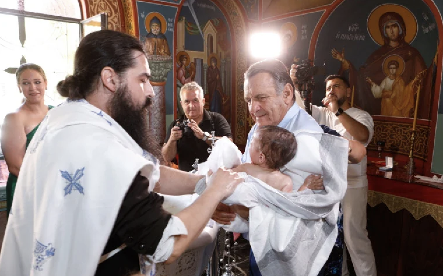 Χθες το πρωί, η Χριστίνα Λαμπίρη, συγκινημένη, παρακολούθησε τον σύζυγό της, Θανάση Αδαμόπουλο, να βαφτίζει τον δεύτερο εγγονό τους, που πήρε το όνομα Χρήστος.