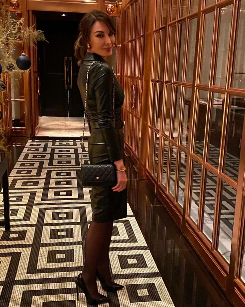 Η Τατιάνα ολοκλήρωσε το look με μαύρο καλσόν, ψηλοτάκουνες μαύρες γόβες και κλασική chain bag από τον οίκο μόδας Chanel.