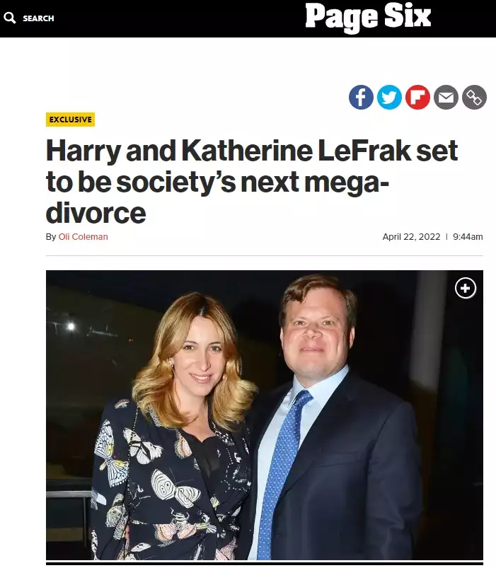 Όπως έγραψε το Page Six πριν από έξι μήνες, ο χωρισμός της Κάθριν Εμπειρίκου από τον δισεκατομμυριούχο Χάρισον ΛεΦρακ, ήρθε πολύ απρόσμενα, καθώς το ζευγάρι –που είχε αποκτήσει ένα γιο το 2019– θεωρείτο πολύ ευτυχισμένο όσο και χαμηλών τόνων.