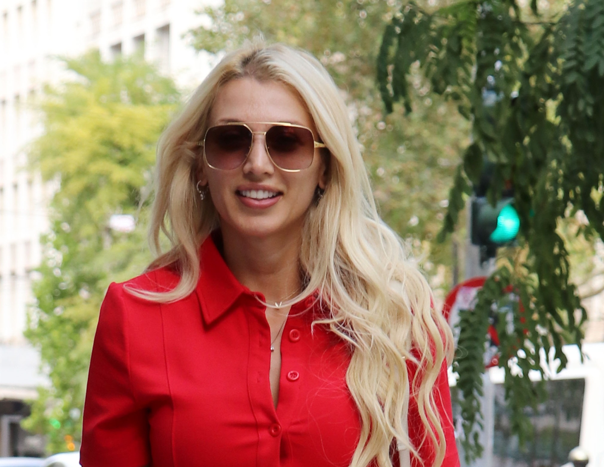 Φανερά αδυνατισμένη και ανανεωμένη, η αγαπημένη παρουσιάστρια πρόσθεσε εντυπωσιακά κοσμήματα και κομψά γυαλιά ηλίου και φυσικά έκλεψε τις ενντυπώσεις.