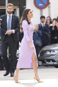 Στην πρώτη από τις προγραμματισμένες εκδηλώσεις η Λετίσια επέλεξε ένα μίντι λιλά φόρεμα σε μοντέρνα γραμμή.