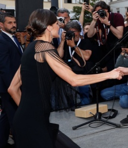 Όταν χρειάστηκε να καθίσει στο εσωτερικό του θεάτρου, η Λετίσια η οποία είναι πιο ανανεωμένη από ποτέ, τοποθέτησε το τσαντάκι της στα πόδια της, προκειμένου να μην δείξει περισσότερα από όσα θα ήθελε στους φωτογράφους, λόγω του μεγάλου σκισίματος του φορέματός της.
