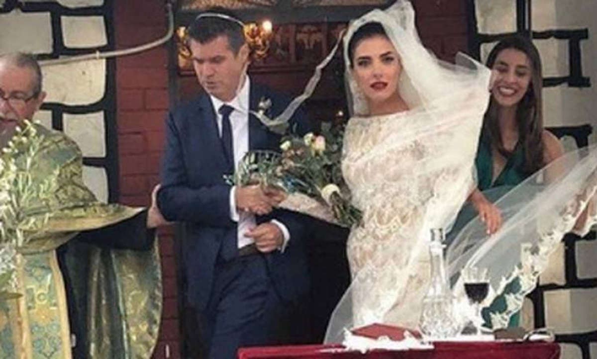 Όπως φαίνεται και στην εικόνα, η Φωτεινή Δάρρα ήταν πολύ εντυπωσιακή μέσα στο στενό, όλο δαντέλα και διαφάνεια νυφικό της.