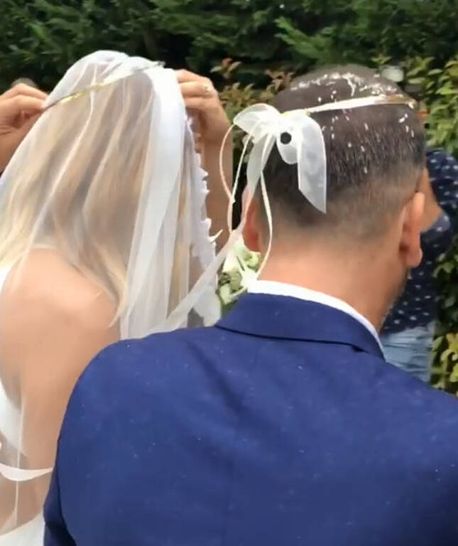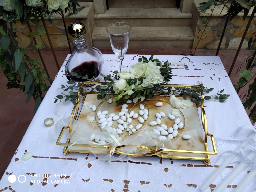Κουμπάροι τους ήταν η Χρύσπα και ο παιδικός φίλος του γαμπρού Ντίνος Μαργώνης.
