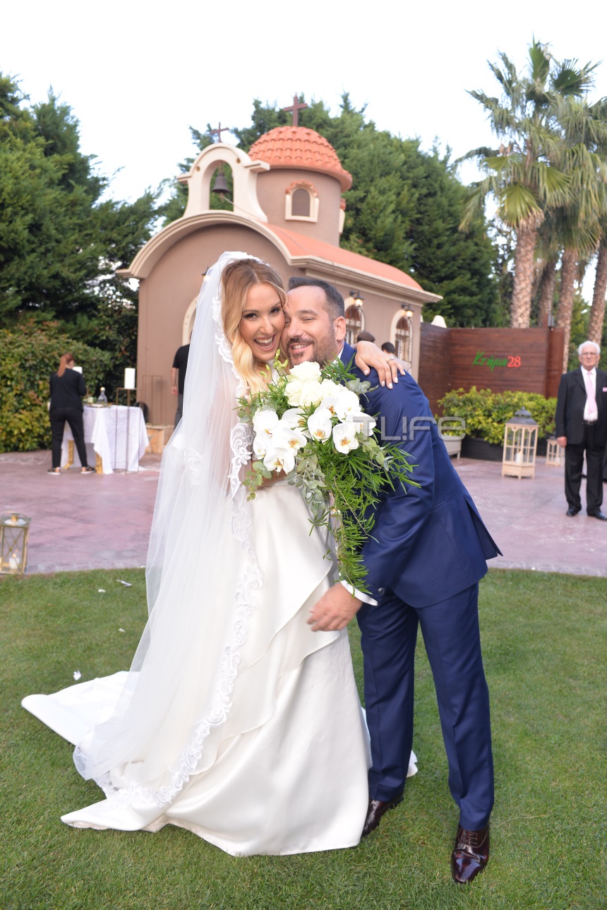 Η Μαίρη έλαμπε από χαρά στο εντυπωσιακό νυφικό της Όλγας Καραβαρβέρη. Ο Σπύρος πανευτυχής και υπέρκομψος επέλεξε ένα κοστούμι του Νίκου Αποστολόπουλου.
