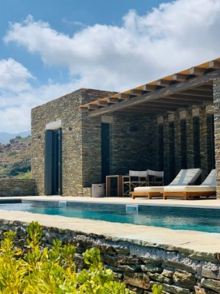 - Χώροι: Καλαίσθητο καθιστικό με ξεχωριστό υπνοδωμάτιο, μικρή κουζίνα, δυο μπάνια, βεράντα με πέργκολες και θέα στη θάλασσα, ιδιωτική πισίνα.