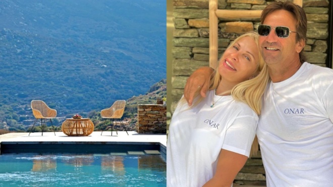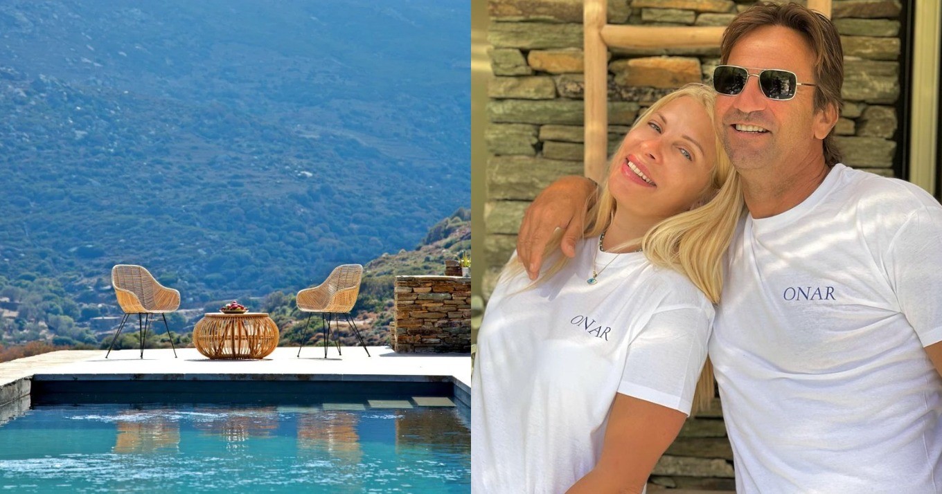 Η Ελένη Μενεγάκη έχει βρει τον παράδεισό της στην ξενοδοχειακή μονάδα του συζύγου της, Ματέου Παντζόπουλου, Όναρ, στην Άνδρο.