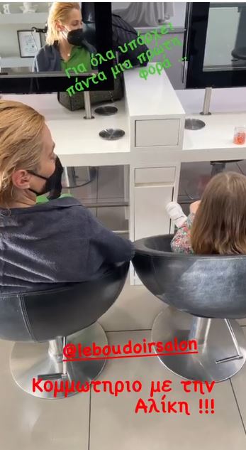 H φωτογραφία της Τζένη Μπότση με την κορούλα της στο κομμωτήριο