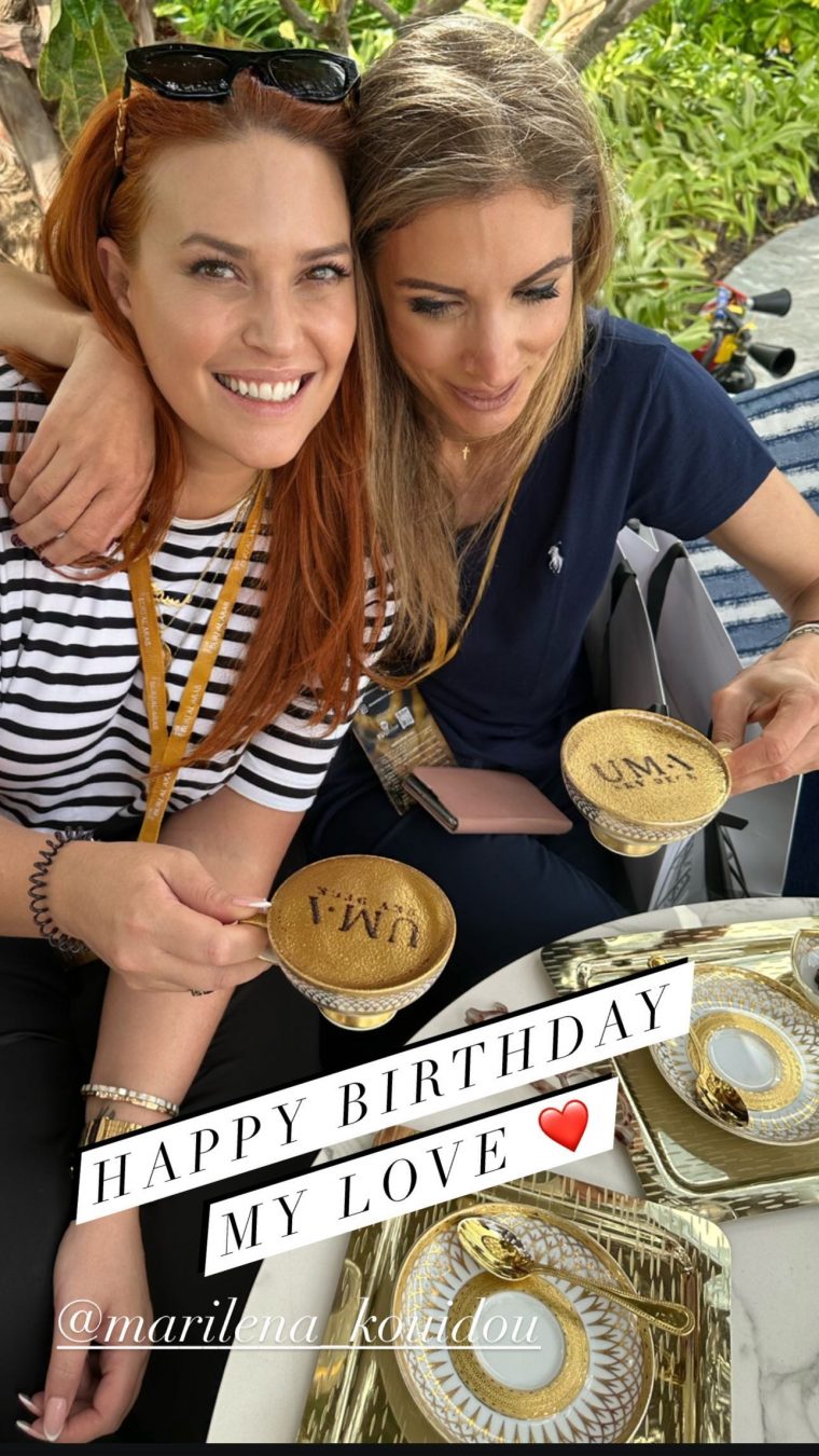Στην παρέα της είναι και μία καλή της φίλη, επιχειρηματίας, με την οποία απόλαυσαν τον καφέ τους σε ένα από τα πιο όμορφα σημεία του Ντουμπάι, το roof top του Burj Al Arab, σ’ ένα από τα πιο πολυτελή ξενοδοχεία στον κόσμο, με μοναδική θέα.