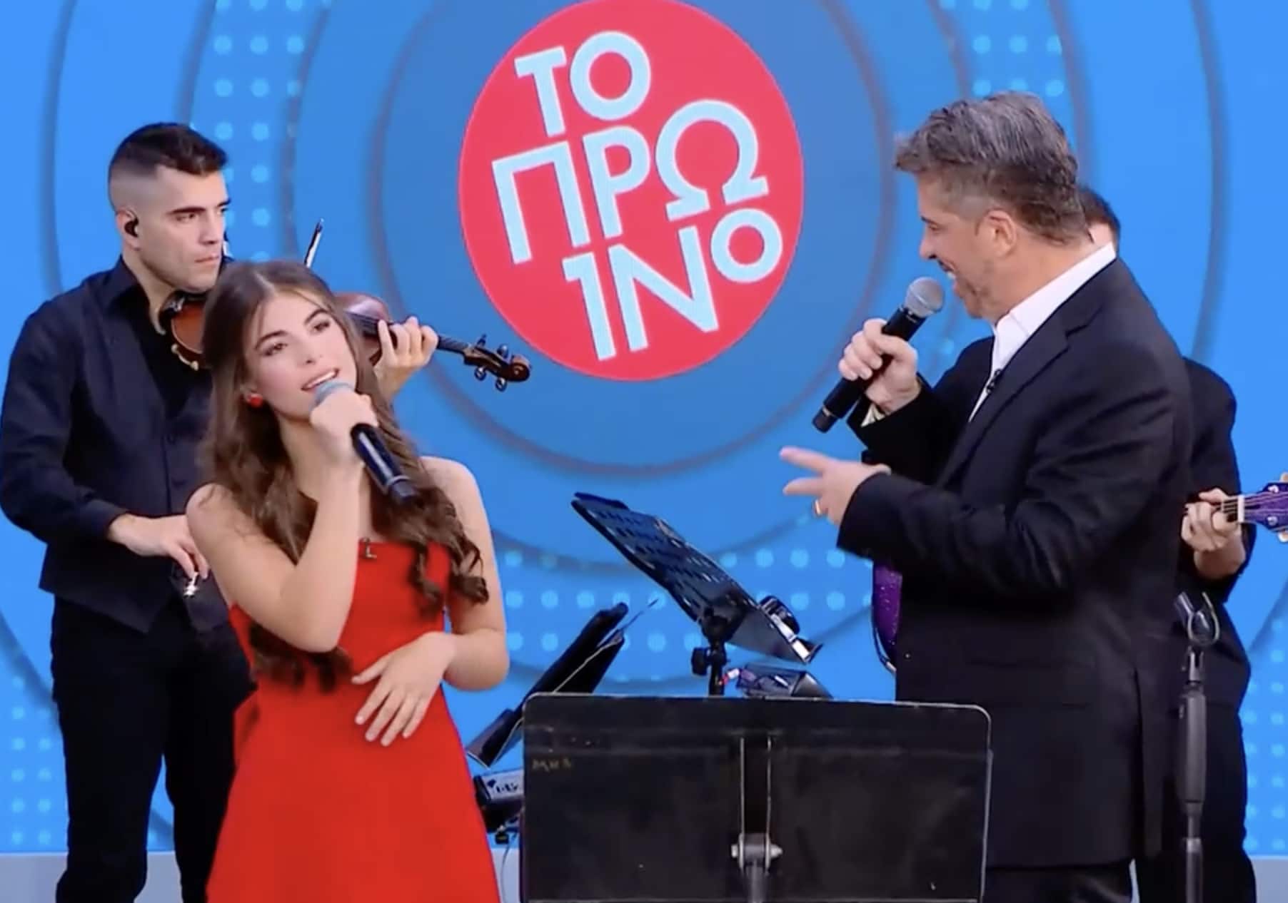 Τότε ήταν που στο πλατό εμφανίστηκε η 13χρονη κόρη τους, Λιόνα Βαρθακούρη, για να τραγουδήσει για πρώτη φορά μπροστά σε κοινό.