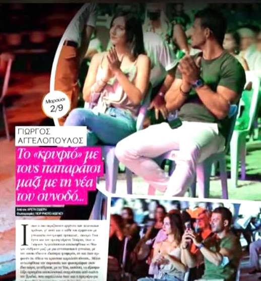 Σύμφωνα με το ρεπορτάζ του περιοδικού, μόλις ο Αγγελόπουλος αντιλήφθηκε τους φωτογράφους αντέδρασε αμέσως, ωστόσο το υλικό είχε ήδη εξασφαλιστεί και εντέλει δημοσιεύτηκε στο περιοδικό. Το μόνο που μπορούμε να πούμε είναι πως το κορίτσι αυτό είναι ιδιαιτέρως κομψό και πολύ όμορφο. Ο Γιώργος Αγγελόπουλος είναι από τους άνδρες που έχουν κερδίσει μεγάλη μερίδα του γυναικείου κοινού. Η παρουσία του σε σίριαλ και ταινίες έχει αποσπάσει ποικίλα σχόλια, ωστόσο ο ίδιος φαίνεται να μη δίνει μεγάλη τροφή για σχόλια ιδίως με ο,τι έχει να κάνει με την προσωπική του ζωή.
