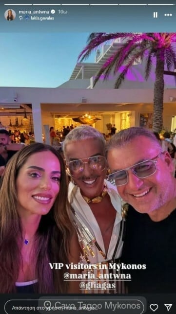 Μάλιστα, το απόγευμα του Σαββάτου 30 Αυγούστου, η Μαρία Αντωνά δημοσίευσε για πρώτη φορά κοινή φωτογραφία με τον παρουσιαστή, ξαφνιάζοντας τους ακολούθους της. Σε αυτή, βλέπουμε το ζευγάρι να ποζάρει χαμογελαστό στο πλευρό του Λάκη Γαβαλά, τον οποίο συνάντησε στο νησί.