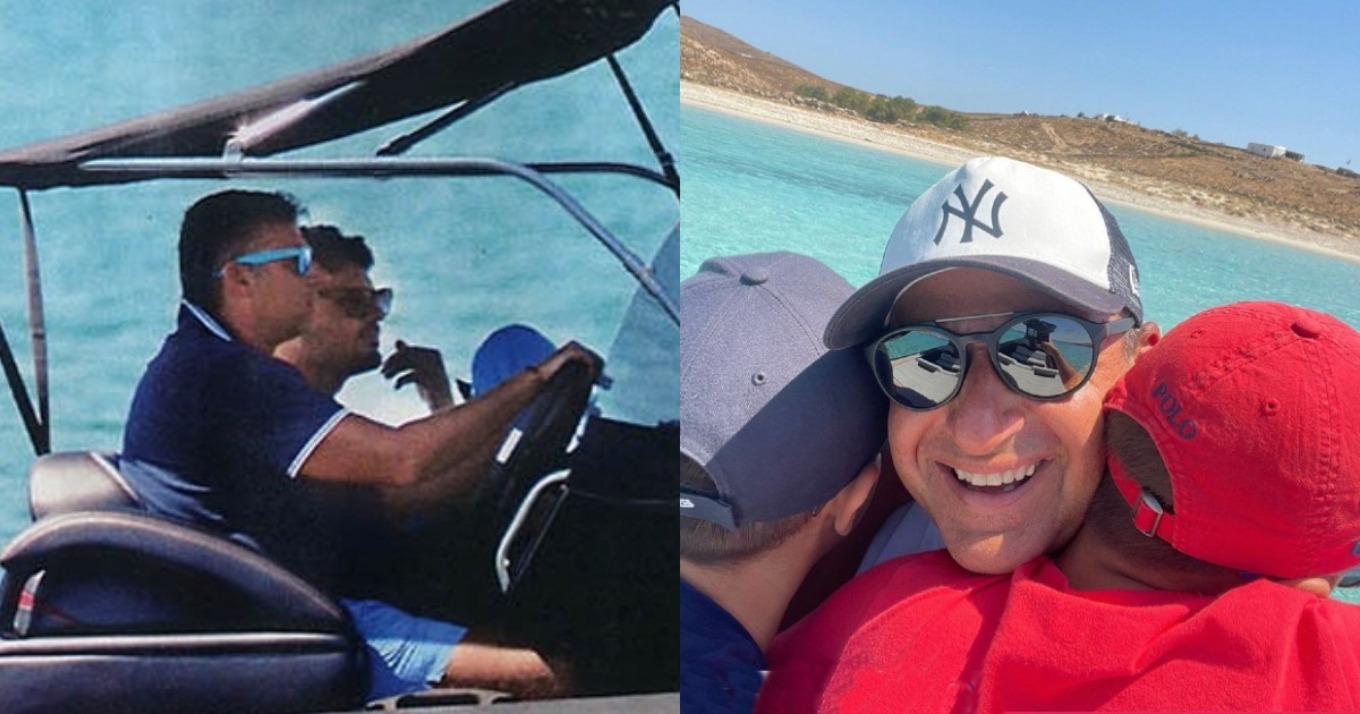 Την Παρασκευή, ο Γιώργος Λιάγκας ο 10χρονος Γιάννης και ο 7χρονος Δημήτρης αποφάσισαν να αφήσουν για λίγο τις αγαπημένες τους παραλίες στο νησί, να πάρουν το πολυτελές σκάφος και να ταξιδέψουν στη μαγευτική Ρήνεια, το μικρό νησάκι που βρίσκεται δίπλα στη Δήλο.
