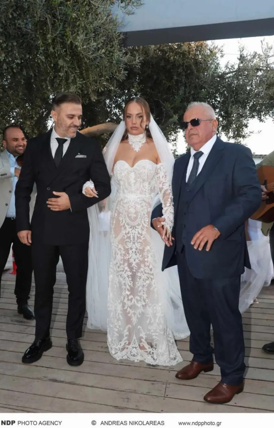 Η τραγουδίστρια τράβηξε τα βλέμματα μέσα στο λαμπερό και εντυπωσιακό νυφικό της, το οποίο ήταν φτιαγμένο όλο με δαντέλα και διαφάνειες, αναδεικνύοντας το καλλίγραμμο κορμί της, Ο τραγουδιστής από την άλλη ήταν κομψός και λιτός ντυμένος με ένα απλό μαύρο κουστούμι και λευκό πουκάμισο με παπιγιόν, ταιριάζοντας πλήρως με την νύφη.