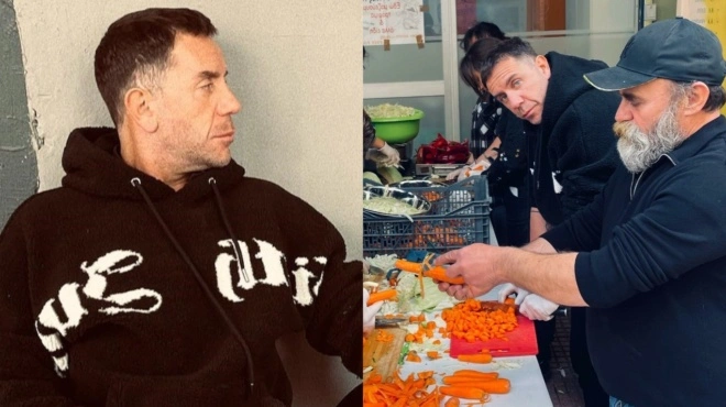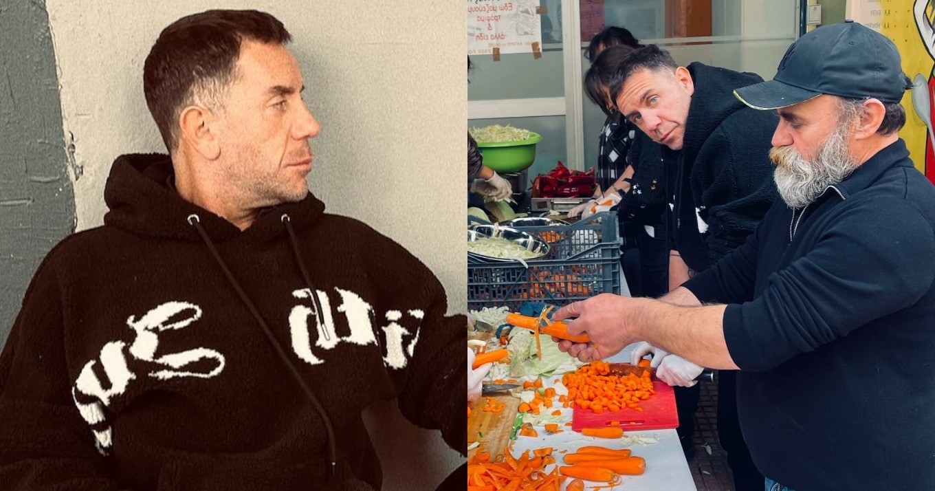 Ειδικότερα, σήμερα το πρωί, ο τραγουδιστής, μαζί με τον Κωνσταντίνο Πολυχρονόπουλο, εμπνευστή της πρωτοβουλίας κοινωνικής αλληλεγγύης “Ο άλλος άνθρωπος“, μαγείρεψαν για τους άστεγους της Αθήνας.