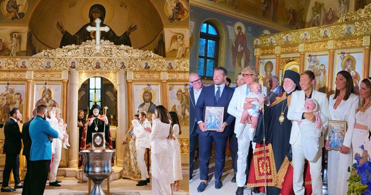 Νονές των παιδιών είναι το μοντέλο Μπιάνκα Μπραντολίνι και η χρυσή κληρονόμος, Ευγενία Νιάρχου, η οποία διατηρεί στενή φιλία με το ζευγάρι. Οι νονές φόρεσαν λευκά κροσέ σύνολα με crop top και φούστα.