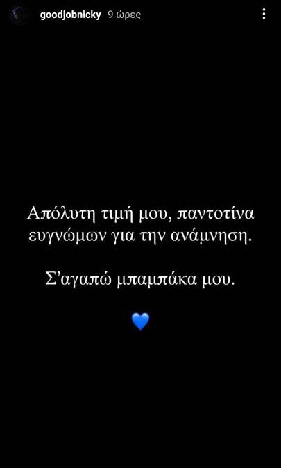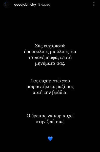 Ο Νικόλας Βαρθακούρης, γνωστός σε όλους Good Job Nicky ευχαρίστησε όλους, όσους του έστειλαν μηνύματα για την εμφάνισή του, μιλώντας παράλληλα και για τον πατέρα του, Γιάννη Πάριο.