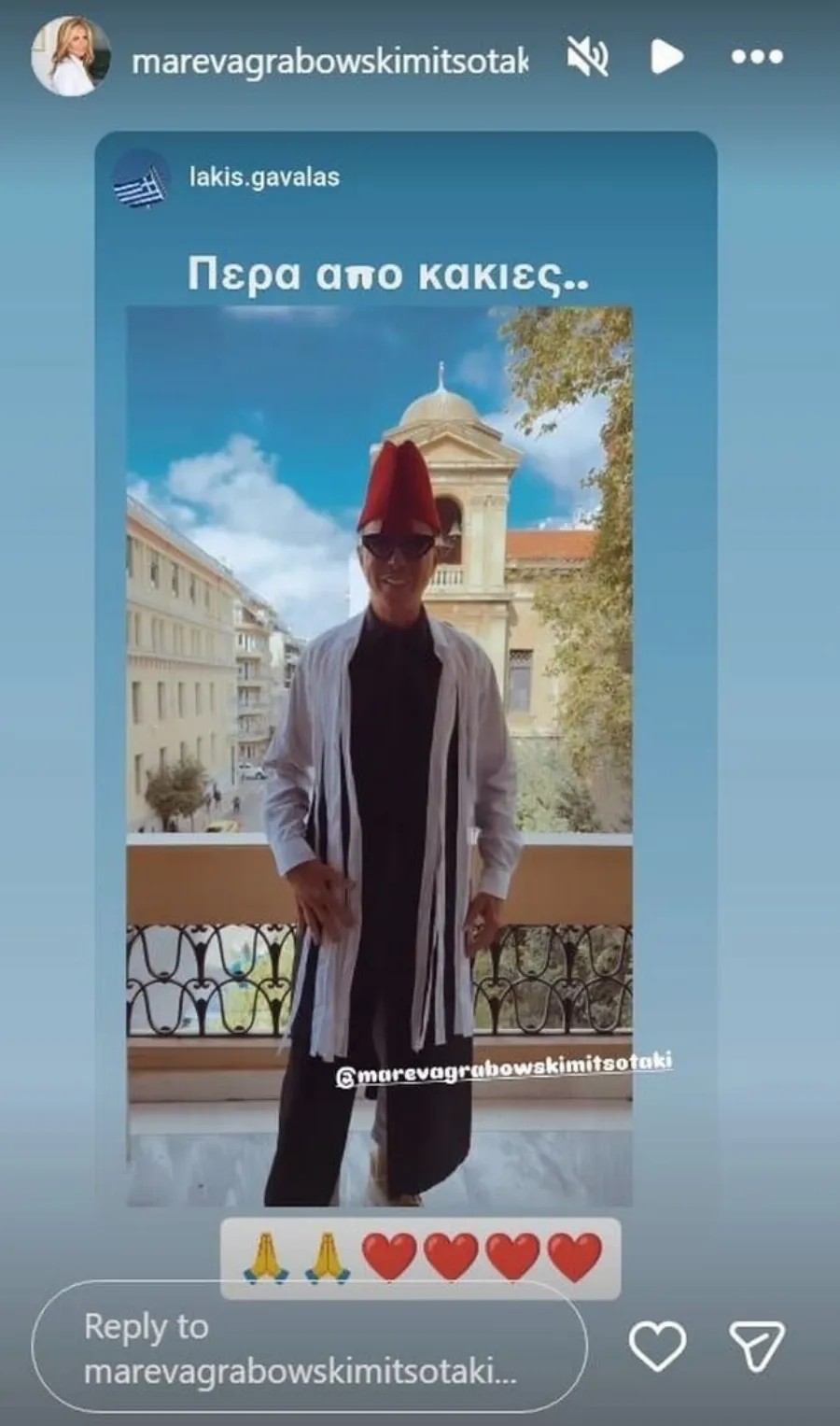 Η Μαρέβα Μητσοτάκη ανάρτησε το βίντεο στον επίσημο λογαριασμό της στο Instagram, συνοδεύοντάς το με emoji καρδιών και ευγνωμοσύνης.