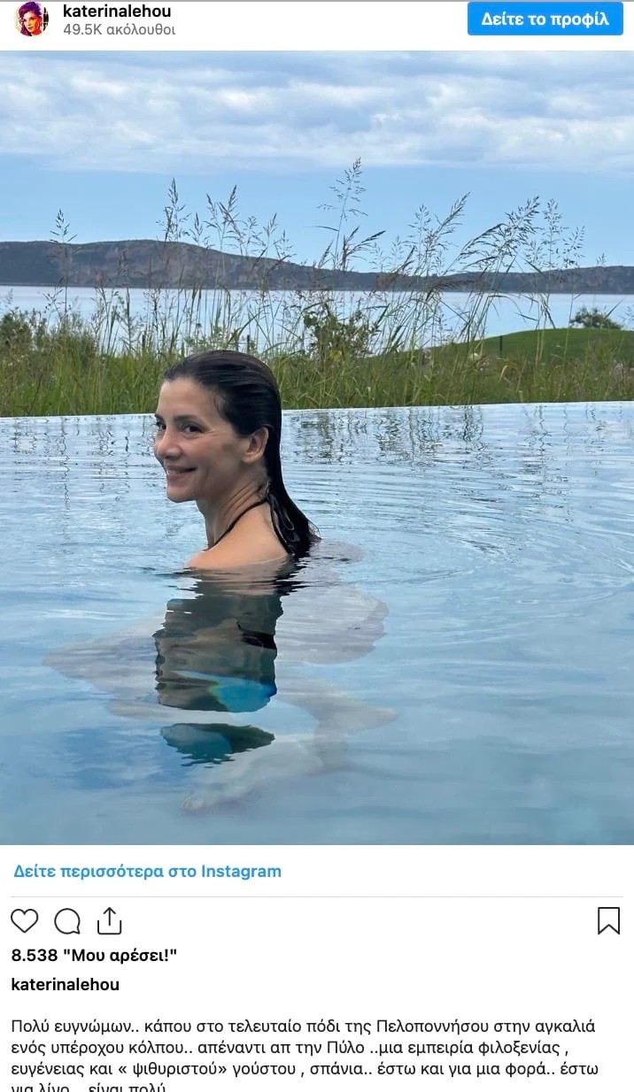 Πόζαρε μέσα στην πισίνα με θέα την Πύλο χωρίς ίχνος μακιγιάζ και αποθεώθηκε από τους followers της.