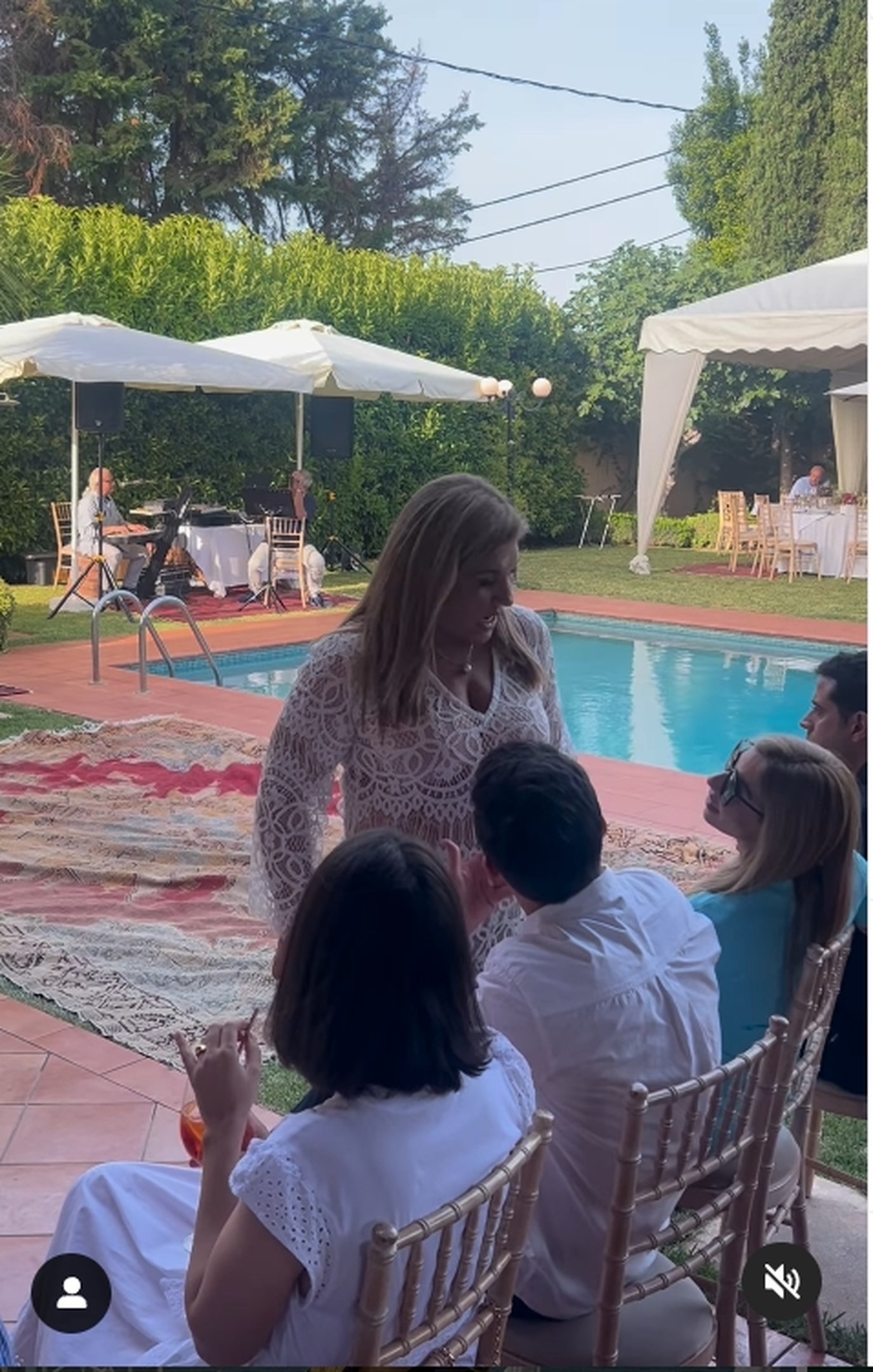 Η Δέσποινα ξεχώρισε με το λευκό της δαντελένιο μακρύ φόρεμα, τονίζοντας την κομψότητα και τη γοητεία της. Ανάμεσα στους καλεσμένους ήταν επίσης γνωστά πρόσωπα από την τηλεόραση και τον χώρο των μέσων, όπως η Μαρί Κωνσταντάτου και ο σύζυγός της Γιάννης Κεντ, ενώ ο κήπος γέμισε με γέλια, μουσική και χορό μέχρι αργά το βράδυ.