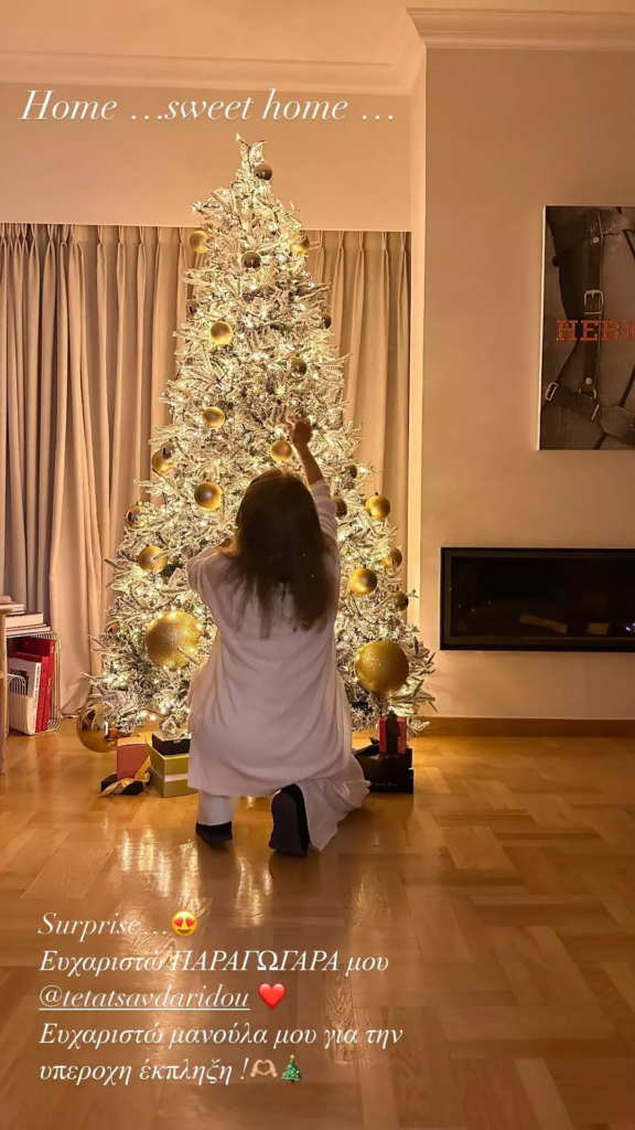 Η παρουσιάστρια του Alpha το απόγευμα της Τετάρτης 29 Νοεμβρίου δέχτηκε μια ευχάριστη έκπληξη, όταν επιστρέφοντας στο διαμέρισμά της είδε το εντυπωσιακό δέντρο που επιμελήθηκε η μητέρα της.