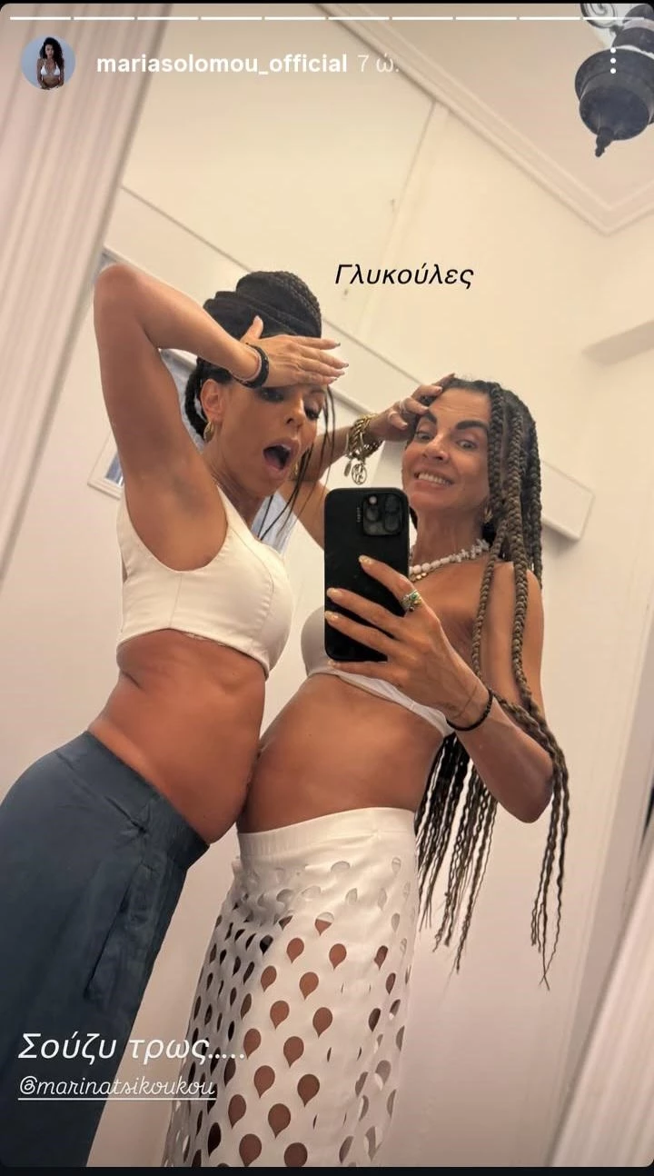 Η Μαρία Σολωμού δεν δίστασε να αναρτήσει ένα σπάνιο κλικ παρέα με τη φίλη της, ποζάροντας για πρώτη φορά με φουσκωμένη κοιλίτσα, την ώρα που οι followers την έχουν συνηθίσει σε φωτογραφίες που αναδεικνύεται το λεπτεπίλεπτο και καλλίγραμμο κορμί της.