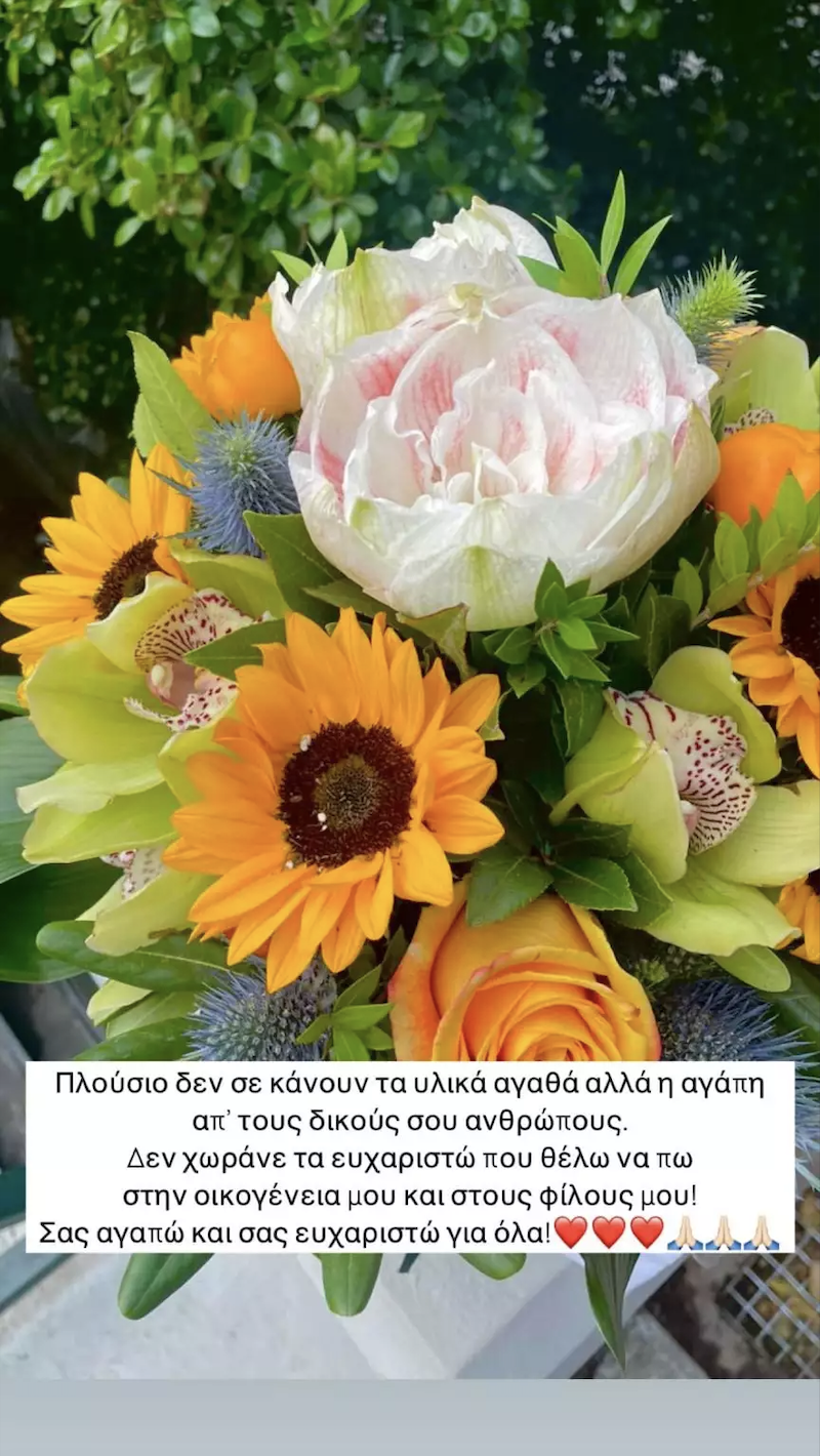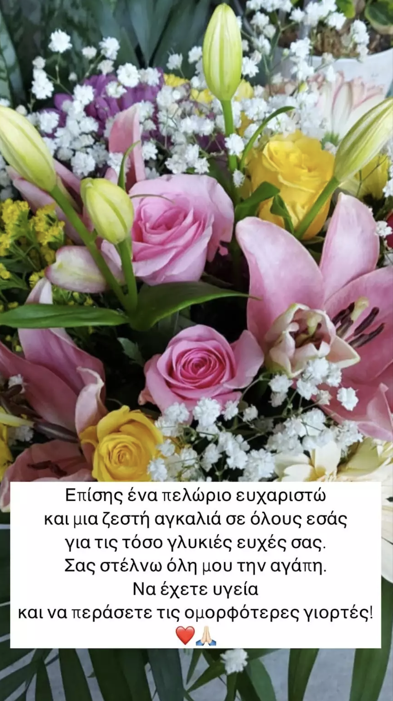 Η παρουσιάστρια ευχαρίστησε θερμά για τα πολύχρωμα άνθη που έλαβε, καθώς και για τις ευχές που δέχτηκε κατά τη διάρκεια αυτής της δύσκολης στιγμής.