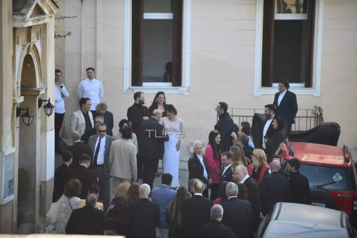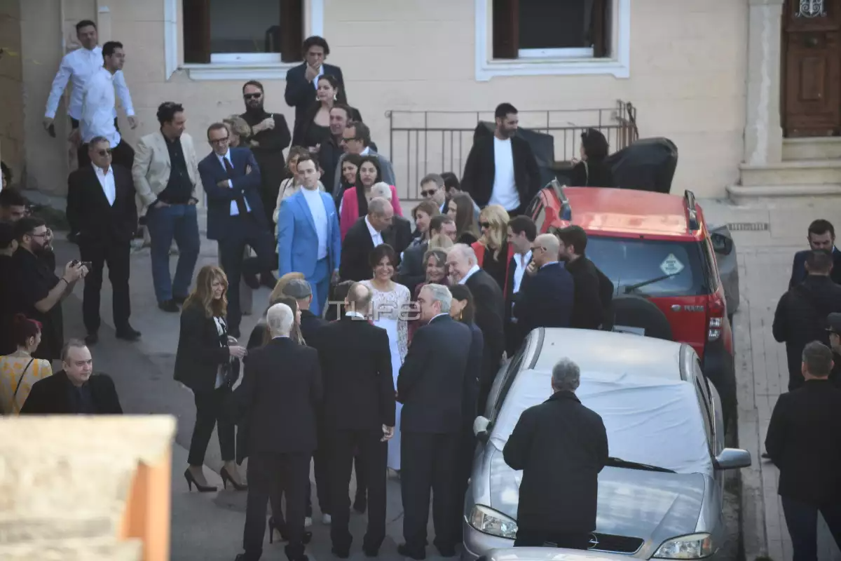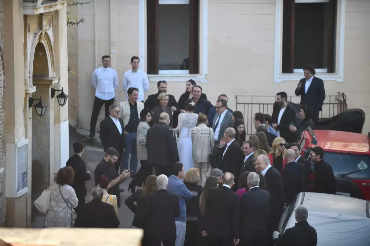 Μεταξύ των καλεσμένων, οι οποίοι δεν ξεπερνούσαν τους 60, ήταν η Δούκισσα Νομικού με τον σύζυγό της, Δημήτρη Θεοδωρίδη, ο Θοδωρής Αθερίδης, ο Χρήστος Χωμενίδης και ο Ρένος Χαραλαμπίδης, ενώ από το πλευρό της νύφης δεν έλειπε η αδερφή της, Μαρία Ματσούκα.