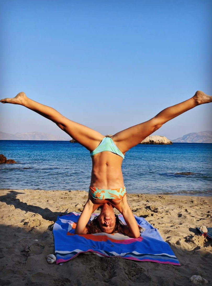 Σε αυτές, η ηθοποιός εμφανίζεται να κάνει κατακόρυφο στην άμμο. Στη λεζάντα που συνοδεύει την ανάρτησή της, η Ηλιάνα Μαυρομάτη έγραψε: «Καλοκαίρι ανάποδα».