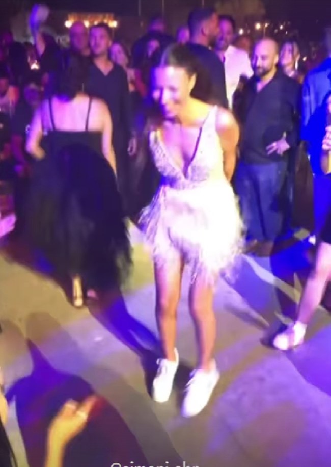 Αρχικά, φόρεσε το μίνι φόρεμά με λαμπερά πέδιλα, ενώ στη συνέχεια φόρεσε ένα ζευγάρι sneakers, αφού δεν σταμάτησε λεπτό να χορεύει.