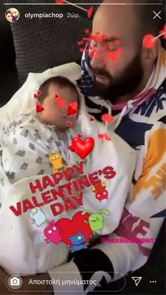 Μάλιστα, ανήμερα του Αγίου Βαλεντίνου, ο αγαπημένος μπασκετμπολίστας έκανε προσπάθεια να κοιμίσει τη νεογέννητη κόρη του και τα κατάφερε, αλλά ο ύπνος πήρε και τον ίδιο, με την Ολυμπία Χοψονίδου ν’ απαθανατίζει τη στιγμή.