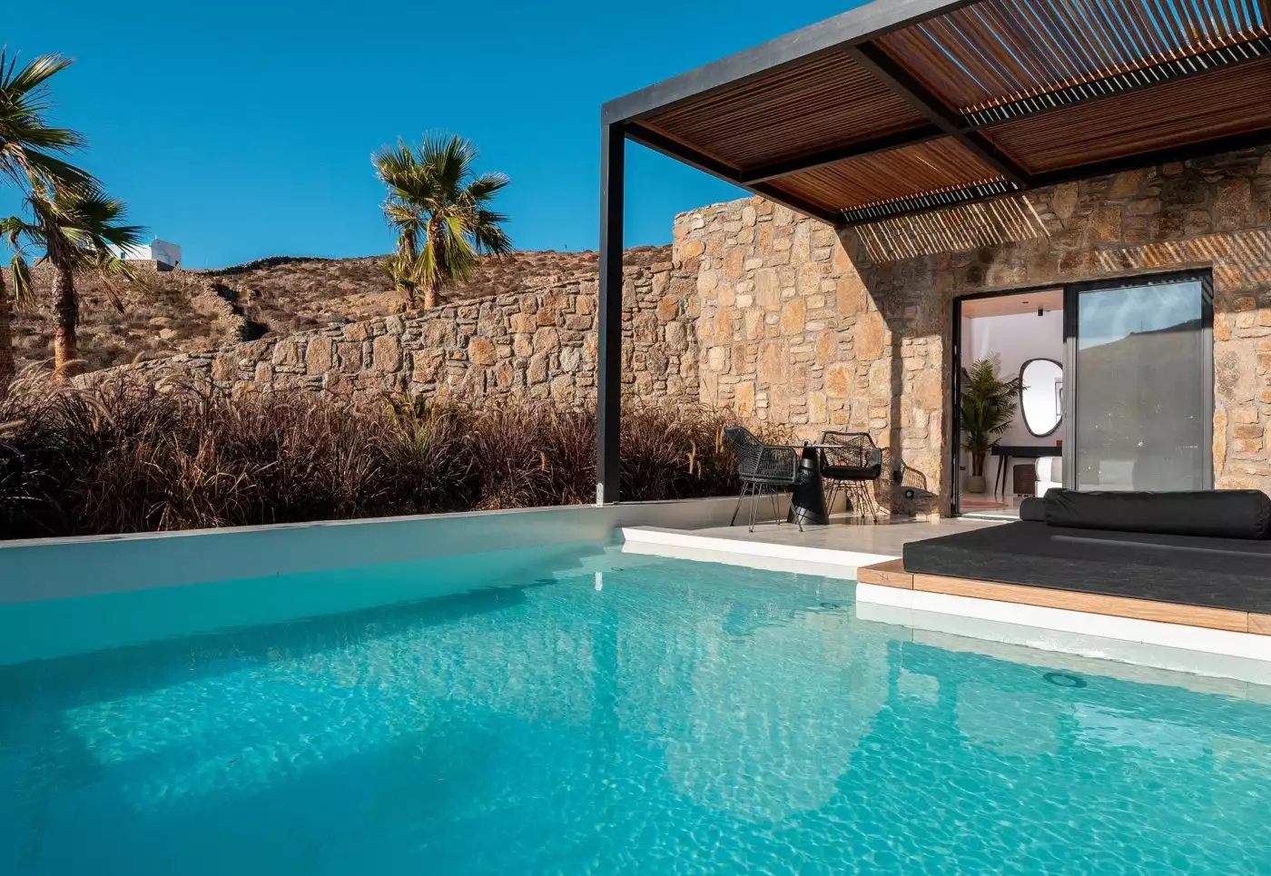 Το νεόκτιστο αυτό πολυτελές συγκρότημα απέχει μόλις 500 μέτρα από την φημισμένη παραλία Αλεμάγου της Μυκόνου και οι σουίτες του ενοικιάζονται αυτή την περίοδο για 500 ευρώ τη βραδιά. Επιπλέον, το ξενοδοχείο διαθέτει σπα, γυμναστήριο και αίθουσα μασάζ, προσφέροντας έτσι μια ολοκληρωμένη εμπειρία χαλάρωσης και πολυτέλειας στους επισκέπτες του.