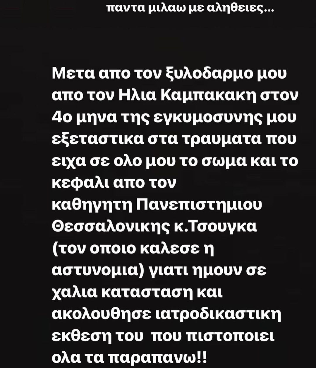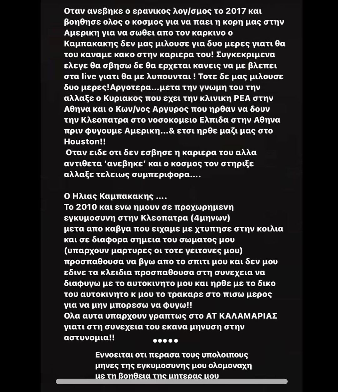 Με μια σειρά από αναρτήσεις που έκανε στον προσωπικό της λογαριασμό στο Instagram, η Αμαλία Τουράνη, η πρώην σύζυγος του Ηλια Καμπακάκη, κατήγγειλε τον τραγουδιστή για ξυλοδαρμό την εποχή που ήταν έγκυος στην κόρη τους.