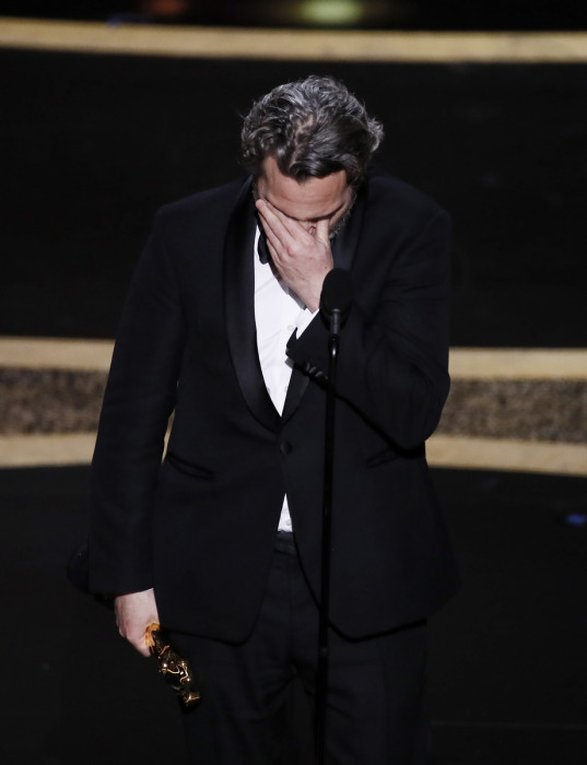 Ο Χοακίν Φίνιξ δεν δίστασε επίσης να παραδεχθεί πως υπήρξε εγωιστής στην ζωή του και σκληρός, ευχαριστώντας όλους όσοι του έδωσαν μια δεύτερη ευκαιρία, όπως είπε χαρακτηριστικά. «Ήμουν κάθαρμα όλη μου την ζωή, ήμουν εγωιστής. Υπήρξα σκληρός μερικές φορές, δύσκολος στη συνεργασία και είμαι ευγνώμων που τόσοι εδώ μέσα μου έδωσαν δεύτερη ευκαιρία», ανέφερε.