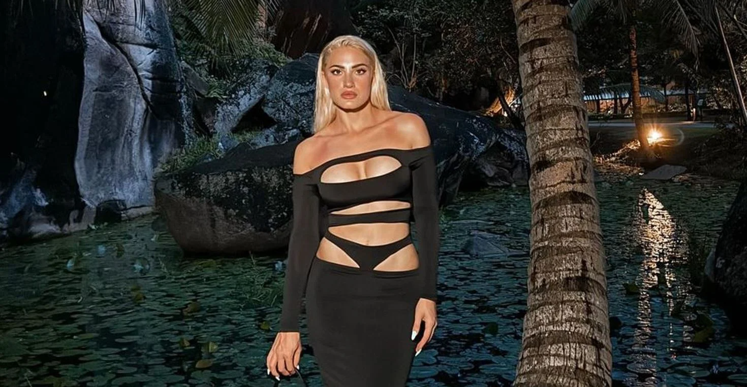 Φορώντας ένα εντυπωσιακό μαύρο ολόσωμο μαγιό, η δημοφιλής Instagrammer εμφανίζεται σε ένα βίντεο που δημοσιεύθηκε από το Mykonos Live Tv, να ποζάρει μπροστά σε ειδικό σκηνικό για φωτογράφιση μαζί με τις υπόλοιπες κοπέλες, οι οποίες φορούσαν επίσης μαύρα μαγιό.
