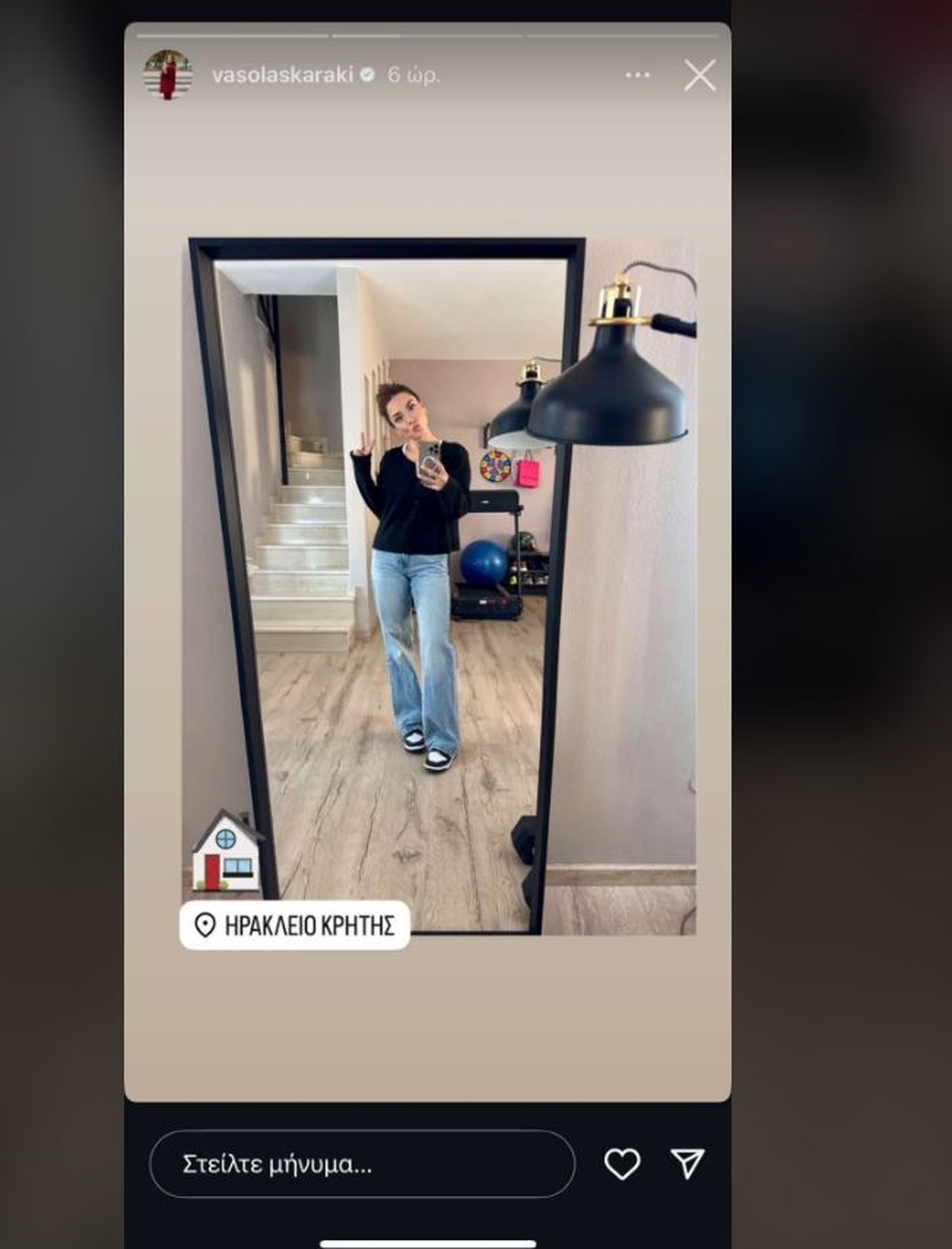 Στον προσωπικό της λογαριασμό στο instagram, ανέβασε ένα story, όπου φανερώνει ότι έχει κατέβει και αυτή στο Ηράκλειο της Κρήτης για να είναι δίπλα στον σύζυγό της.