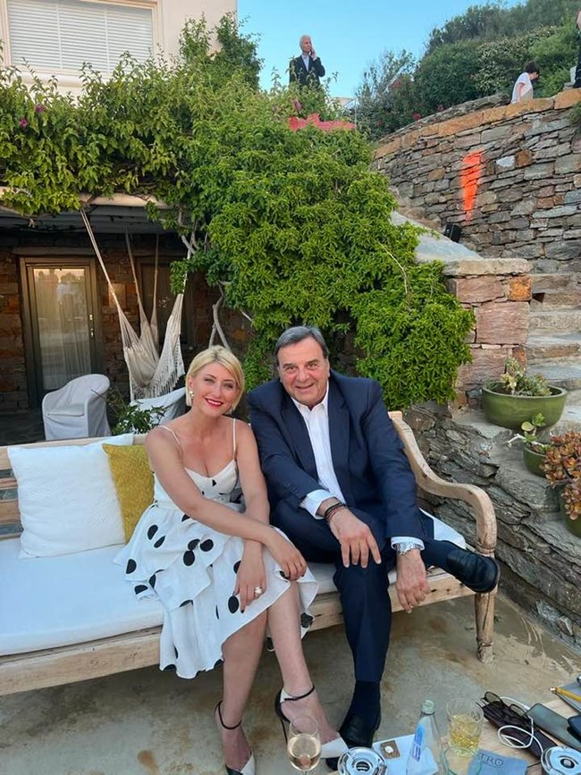 Αλλά και η Σία Κοσιώνη πόζαρε μαζί με τον πεθερό της, σύζυγο της Ντόρας Μπακογιάννη, Ισίδωρο Κούβελο.