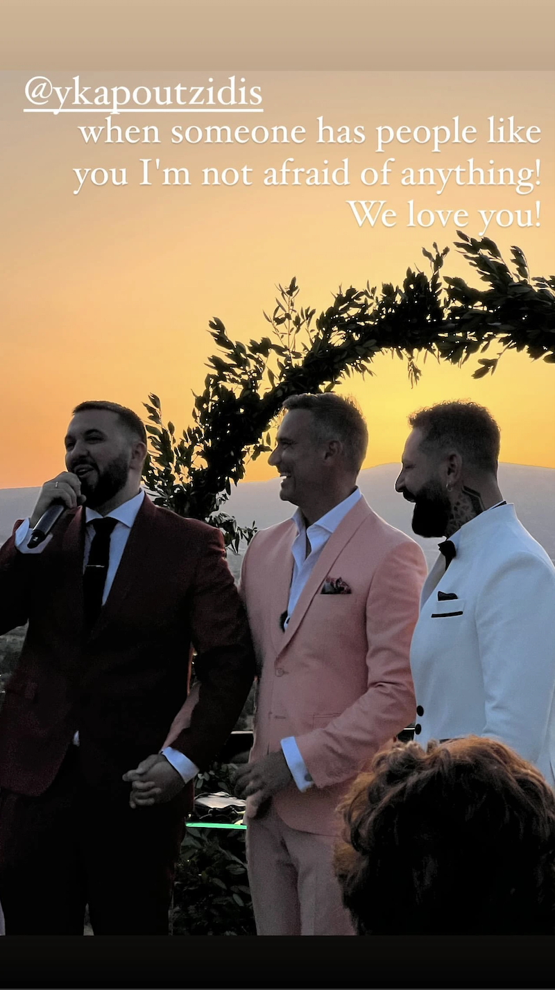 «Ενώσαμε τις ζωές μας και επίσημα πια. Ήταν ένα βήμα που θέλαμε να κάνουμε μετά από 11 χρόνια κοινής πορείας. Σε αυτό το βήμα ήταν κοντά μας ο Γρηγόρης Αρναούτογλου και η Νάνσυ Αντωνίου που στην ουσία έγιναν μάρτυρες στον γάμο τους.