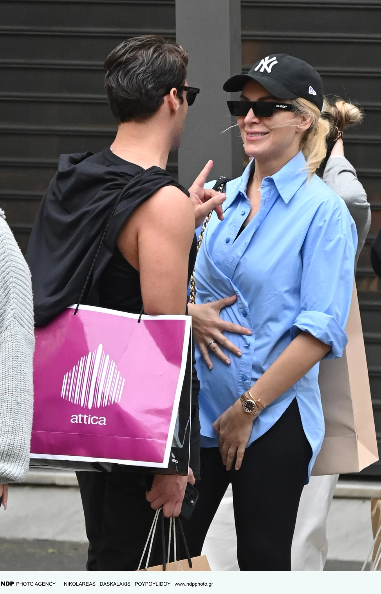 Αργότερα, ένα μαύρο εφαρμοστό φόρεμα που επέλεξε η παρουσιάστρια για τη βραδινή της έξοδο άφηνε να φανεί καθαρά το ελαφρύ φούσκωμα που έχει αρχίσει να σχηματίζεται, καθώς εκείνη διανύει τους πρώτους μήνες της εγκυμοσύνης της.