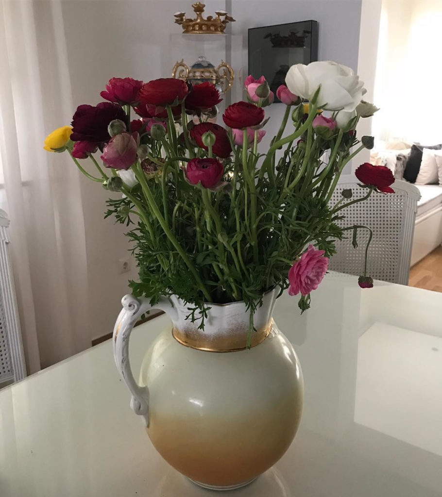 Και πράγματι στο σπίτι κυριαρχεί το λευκό χρώμα και οι γυάλινες λεπτομέρειες. Αυτό που σίγουρα ξεχωρίζει είναι η τεράστια βιβλιοθήκη με τα πολλά βιβλία, τα λουλούδια και φυσικά το στούντιο του σπιτιού στο οποίο περνάει πολλές ώρες ο Διονύσης Σχοινάς αλλά και ο γιος τους, Δημήτρης που πλέον ακολουθεί τα χνάρια των γονιών του στο τραγούδι.