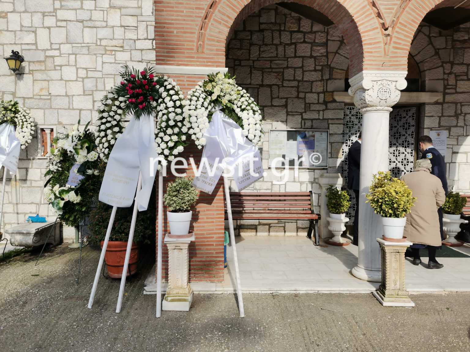 Εμφανώς ταλαιπωρημένη από την περιπέτειά της από τον κορωνοϊό πέρασε την πόρτα της εκκλησίας μη μπορώντας να πιστέψει πως από τη μια στιγμή στην άλλη έχασε από κοντά της, τον άνθρωπό της.