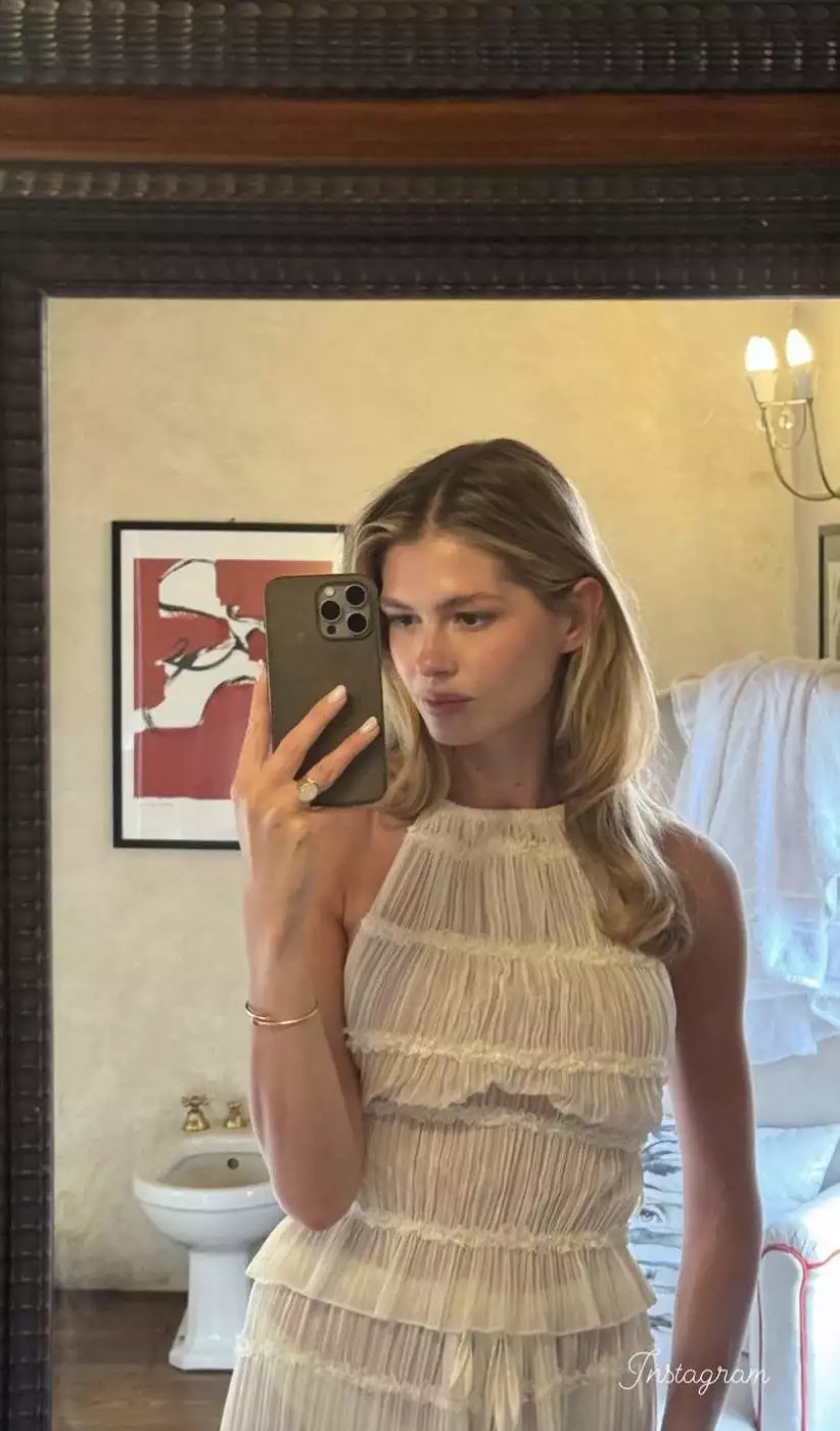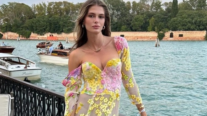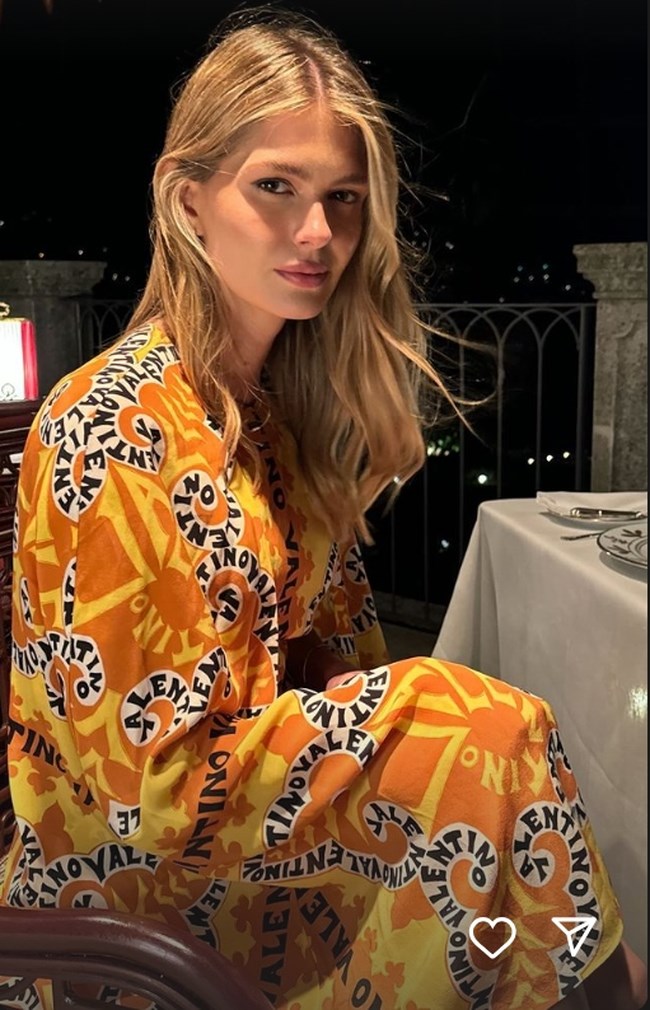Ακόμα, η νεαρή καλλονή ανάρτησε φωτογραφίες από τη βραδινή της εμφάνιση για το δείπνο σε πολυτελές και πανέμορφο εστιατόριο στη λίμνη Κόμο, επιλέγοντας ένα μίνι cape dress Valentino σε αποχρώσεις του κίτρινου.