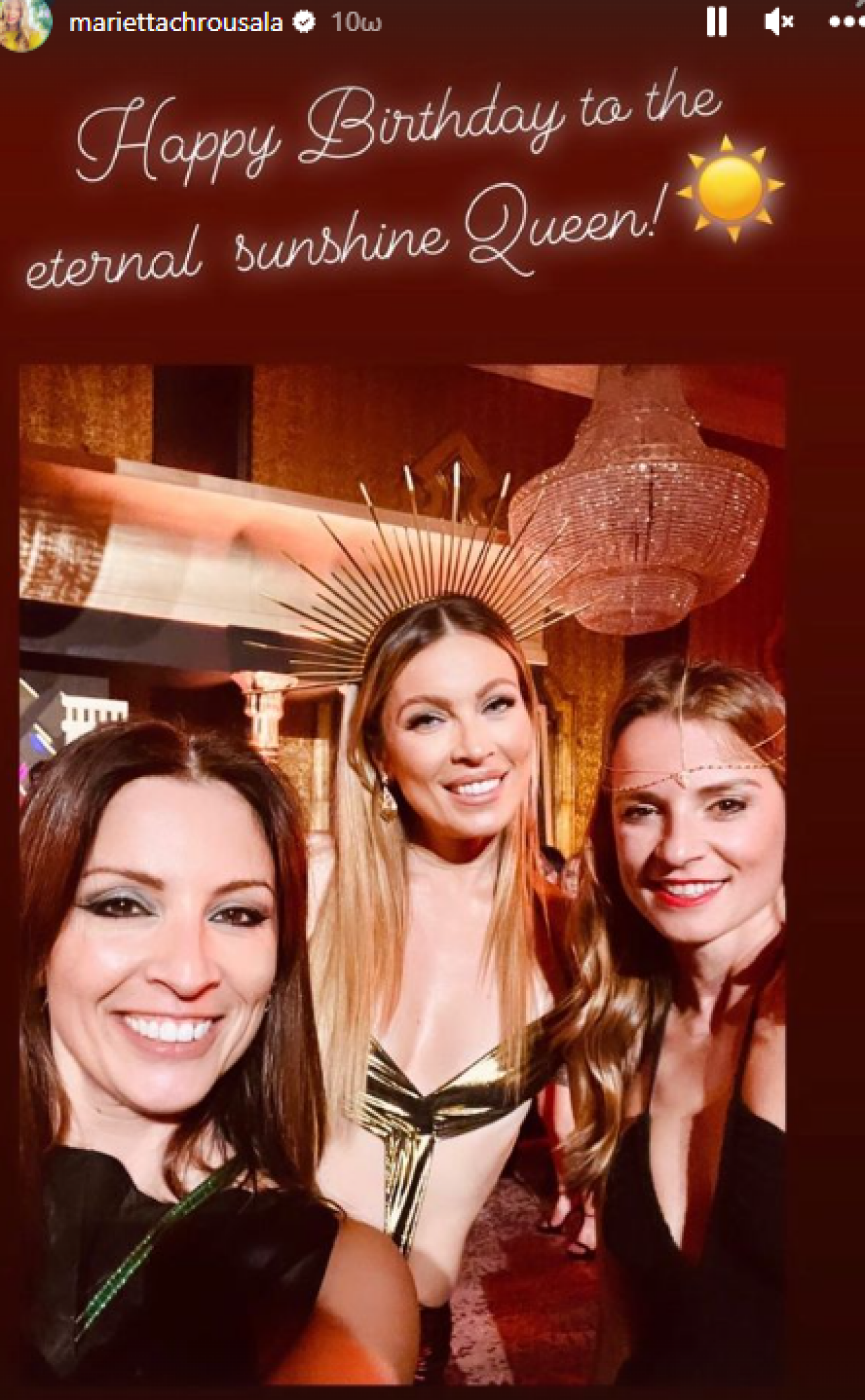 Σε μια γιορτή που θύμισε bachelorette party, η παρουσιάστρια και πρώην Σταρ Ελλάς είχε τυπώσει ακόμα και καπελάκια και t-shirt για τους καλεσμένους της με την επιγραφή «team Marietta».