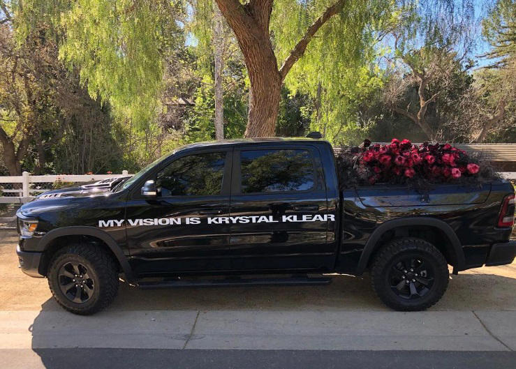 Στις 14 Φεβρουαρίου, ανήμερα του Αγίου Βαλεντίνου, ο Kanye μοιράστηκε στο Instagram του μία φωτογραφία με ένα φορτηγάκι γεμάτο κόκκινα τριαντάφυλλα. Πάνω σε αυτό, ήταν γραμμένο το εξής: «My vision is krystal klear», βάζοντας επίτηδες «k» αντί για «c», για να παραπέμψει στην επιθυμία της οικογένειας Kardashian να χρησιμοποιεί το εν λόγω γράμμα. Σαν αυτό να μην ήταν αρκετό, τάγκαρε και την Kim, καθιστώντας σαφές, αυτό που ούτως ή άλλως υποψιαζόταν το κοινό: ότι τα τριαντάφυλλα προορίζονταν για τη σταρ του KUWTK.