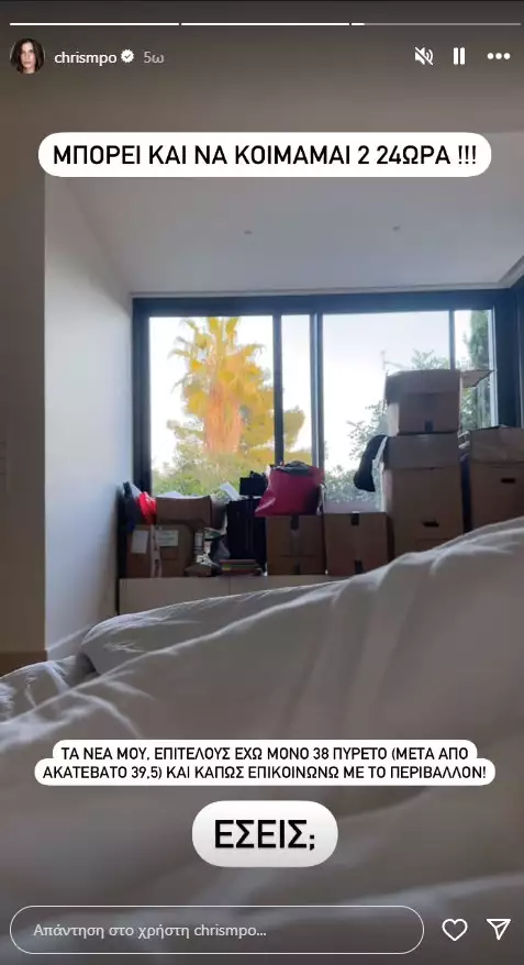 Ωστόσο, δεν πρόλαβαν να ανοίξουν τις κούτες και η σύζυγος του παρουσιαστή ανέβασε υψηλό πυρετό και έπρεπε να μείνει στο κρεβάτι.
