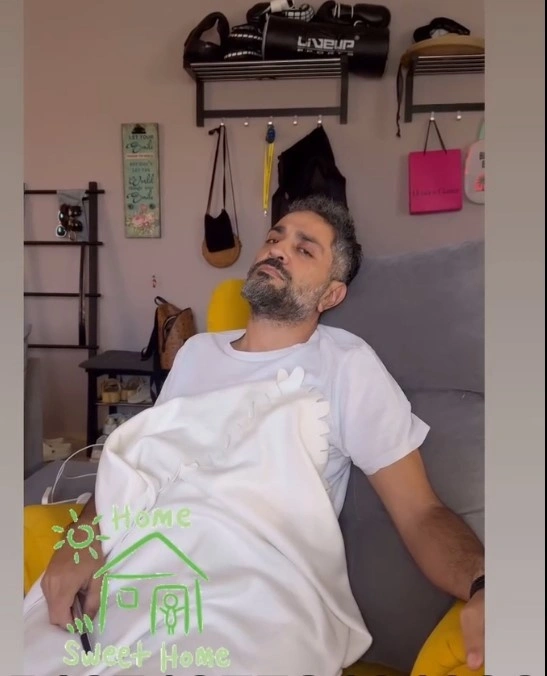 Η ηθοποιός σήμερα, 16 Ιανουαρίου δημοσίευσε δύο βίντεο στα οποία απεικονίζεται ο σύζυγός της στο σπίτι τους στην Κρήτη να είναι ξαπλωμένος στον καναπέ, σκεπασμένος με κουβέρτα και εμφανώς καταβεβλημένος.